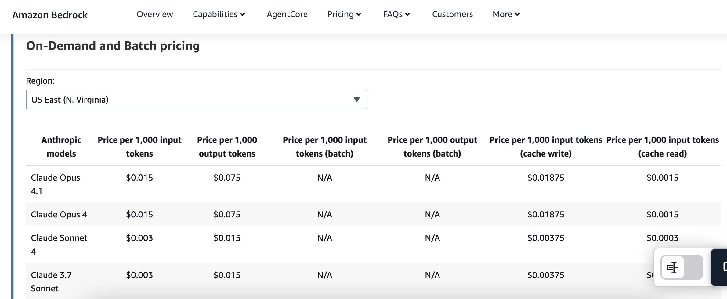 模型价格表 https://us-east-1.console.aws.amazon.com/bedrock/home?region=us-east-1#/